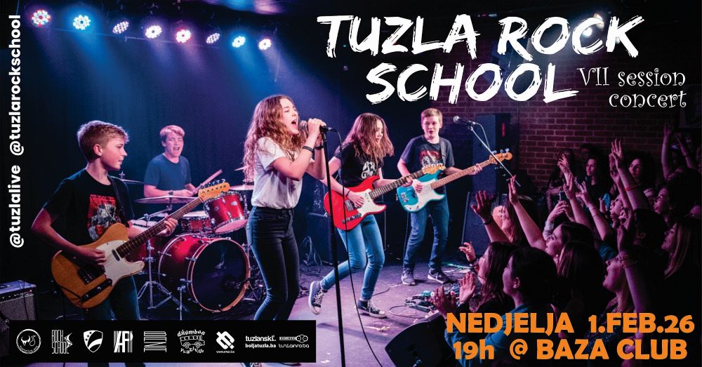 Programski koncert šestog ciklusa Tuzla Rock School, u organizaciji Udruženja „Tuzla Live“, održava se u nedjelju 1.2.26. od 19h u klubu “Baza“. Podržite mlade ljude koji već dva mjeseca uče temelje rock'n'roll.a i srodnih muzičkih pravaca te marljivo razvijaju vještine na svojim instrumentima uz pomne instrukcije njihovih mentora. Ovaj koncert će vas prodrmati, rasplesati i raspjevati, pa zašto nam se ne bi pridružili i proveli ovu hladnu i tmurnu nedjelju sa nama!