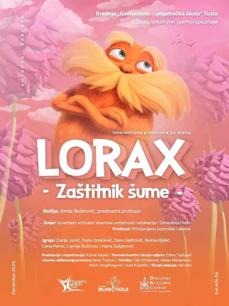 Jedan od rezultata rada učenika drugog razreda je interkativna predstava „LORAX – Zaštitnik šume“ koja će svoje premijerno izvođenje imati u nedjelju, 14.12.2025. godine u 18.00 sati na velikoj sceni Bosanskog kulturnog centra TK. Predstava nastaje po knjizi i istoimenom crtanom filmu i govori o važnosti očuvanja životne sredine, te odnosu ljudi i prirode. Predstava je dio programa obilježavanja Dana škole.