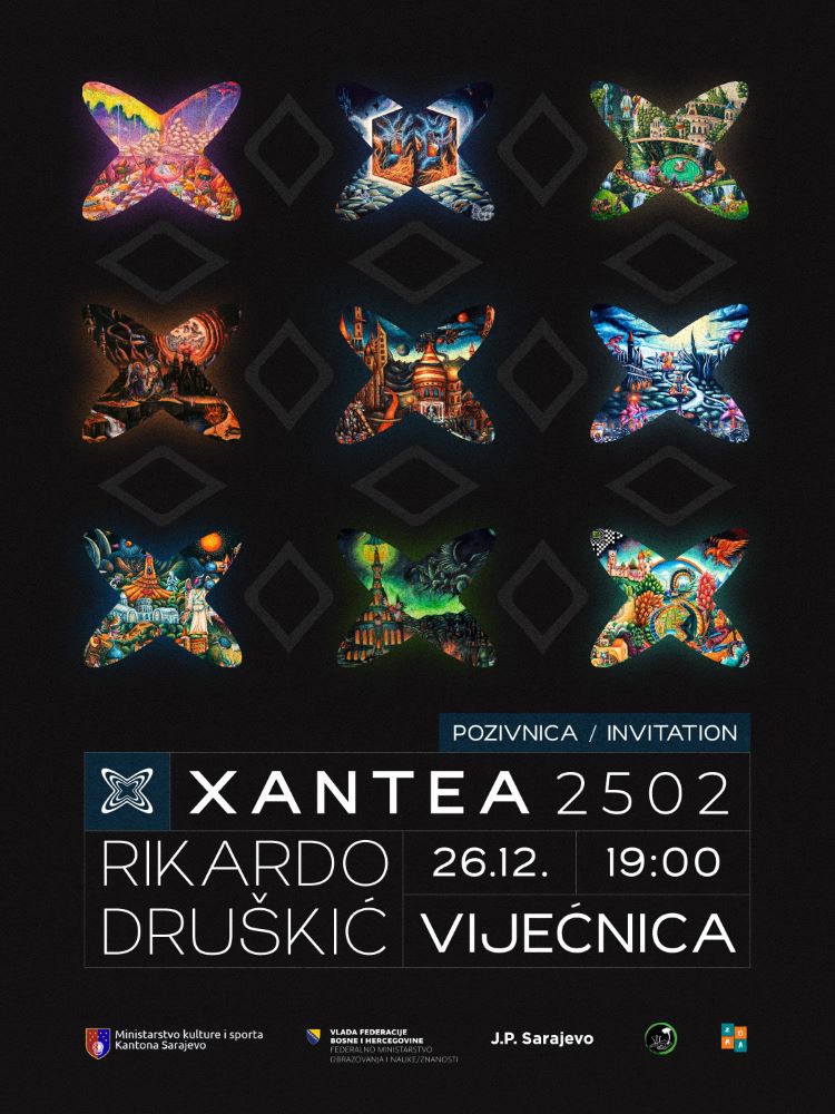 Sarajevo će 26. decembra 2025. godine postati mjesto svjetske umjetničke premijere. U monumentalnom ambijentu Vijećnice bit će otvorena izložba XANTEA 2502, novi ciklus radova svjetski priznatog multidisciplinarnog umjetnika Rikarda Druškića, jednog od najznačajnijih savremenih autora koji dolaze iz Bosne i Hercegovine.